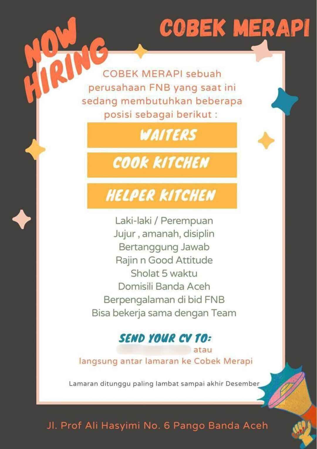 [DIBUKA] Lowongan Kerja Pada 3 Posisi (Cobek Merapi – Banda Aceh)