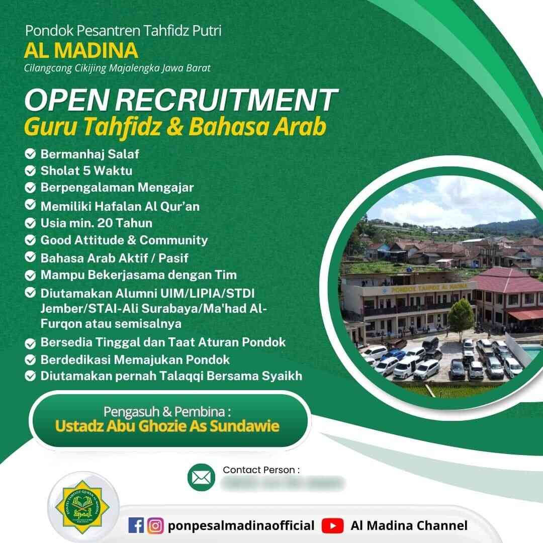 [OPEN RECRUITMENT] Guru Tahfidz & Bahasa Arab (Pondok Pesantren Al Madina – Kab. Majalengka)
