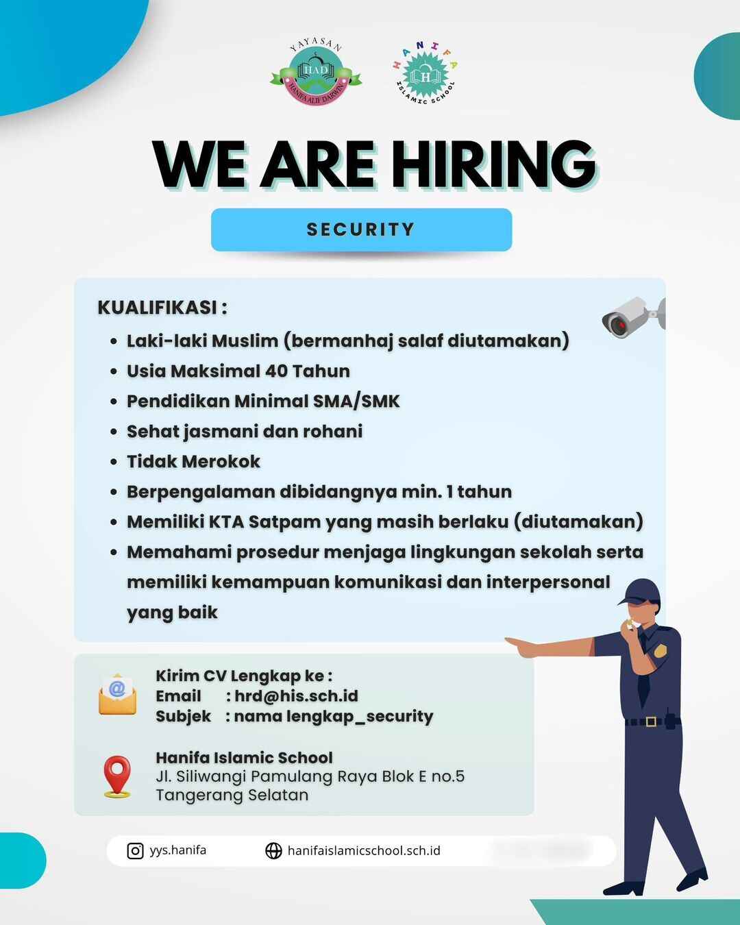 [WE ARE HIRING] Security (Hanifa Islamic School – Tangerang Selatan)