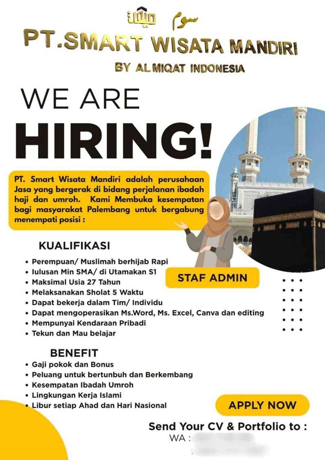[WE ARE HIRING!] Staf Admin (PT. Smart Wisata Mandiri By Almiqat Indonesia – Palembang)