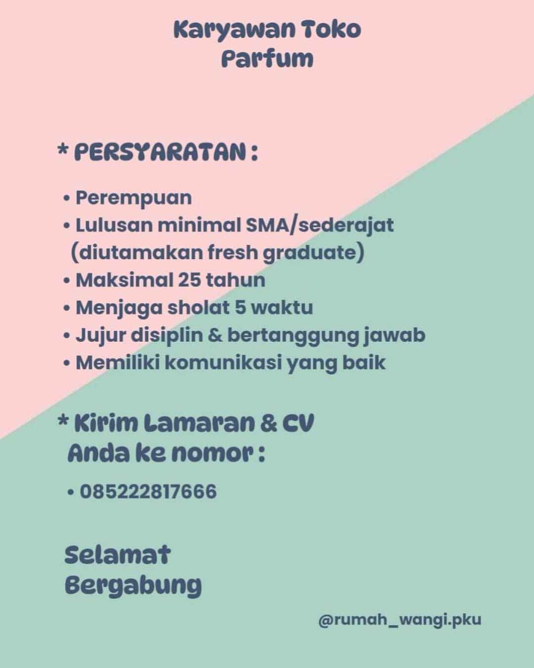 #loker #lowongankerja #carikerja #karyawan #staf #staff #lokerkaryawantoko #lokerstaftoko #lokerstafftoko #lokerkrutoko #lokercrewtoko #akhwat #lokerakhwat #pekanbaru #riau #lokerpekanbaru #lokerriau #lowongankejamuslim #YangPentingHalal #Halal #LokerHalal #LokerMuslim #lokermuslimid #lokermuslimah