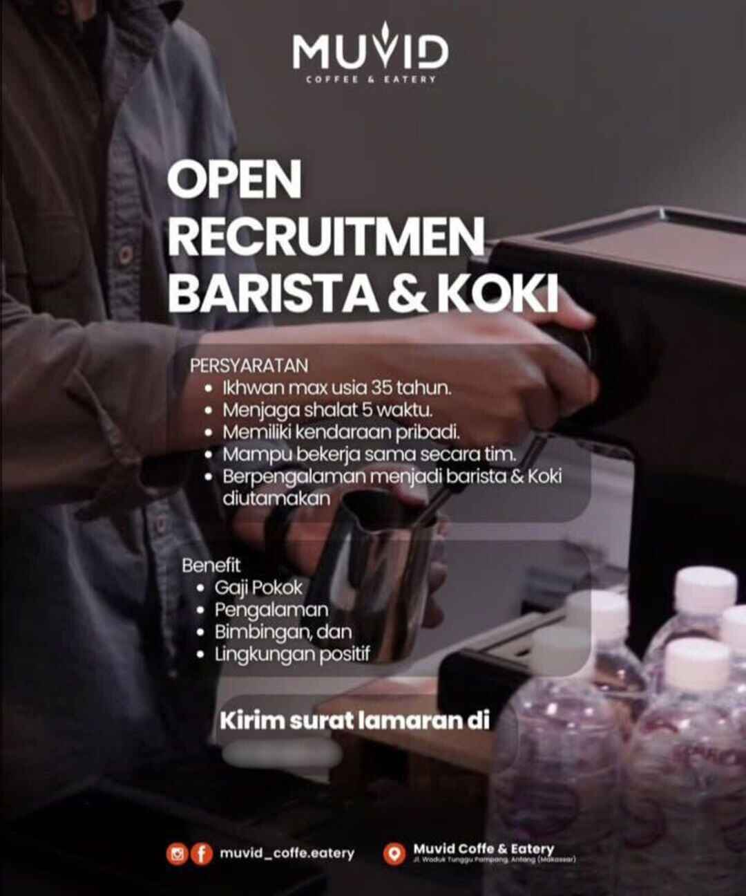 #loker #lowongankerja #carikerja #lokerhalal #lokermuslim #barista #koki #chef #lokerbarista #lokerkoki #lokerchef #ikhwan #lokerikhwan #makassar #sulsel #sulawesi #sulawesiselatan #lokermakassar #lokersulsel #lokersulawesi #lokersulawesiselatan #lowongankejamuslim #YangPentingHalal #Halal #lokermuslimid