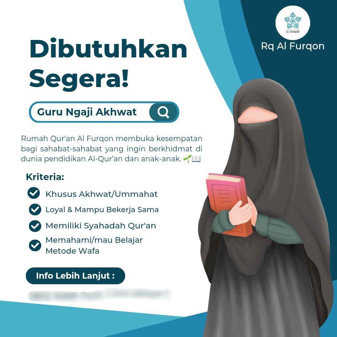 [DIBUTUHKAN SEGERA!] Guru Ngaji Akhwat (RQ Al Furqon – Tangerang Selatan)