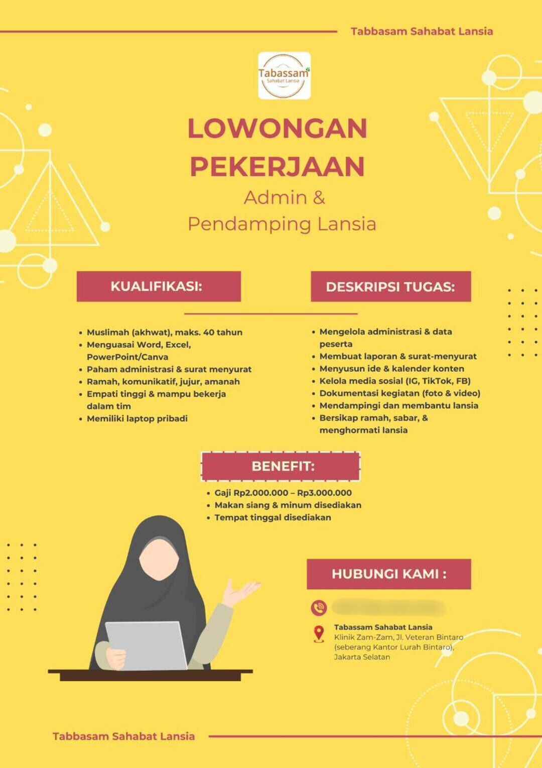 [LOWONGAN PEKERJAAN] Admin & Pendamping Lansia (Tabassam Sahabat Lansia – Jakarta Selatan)