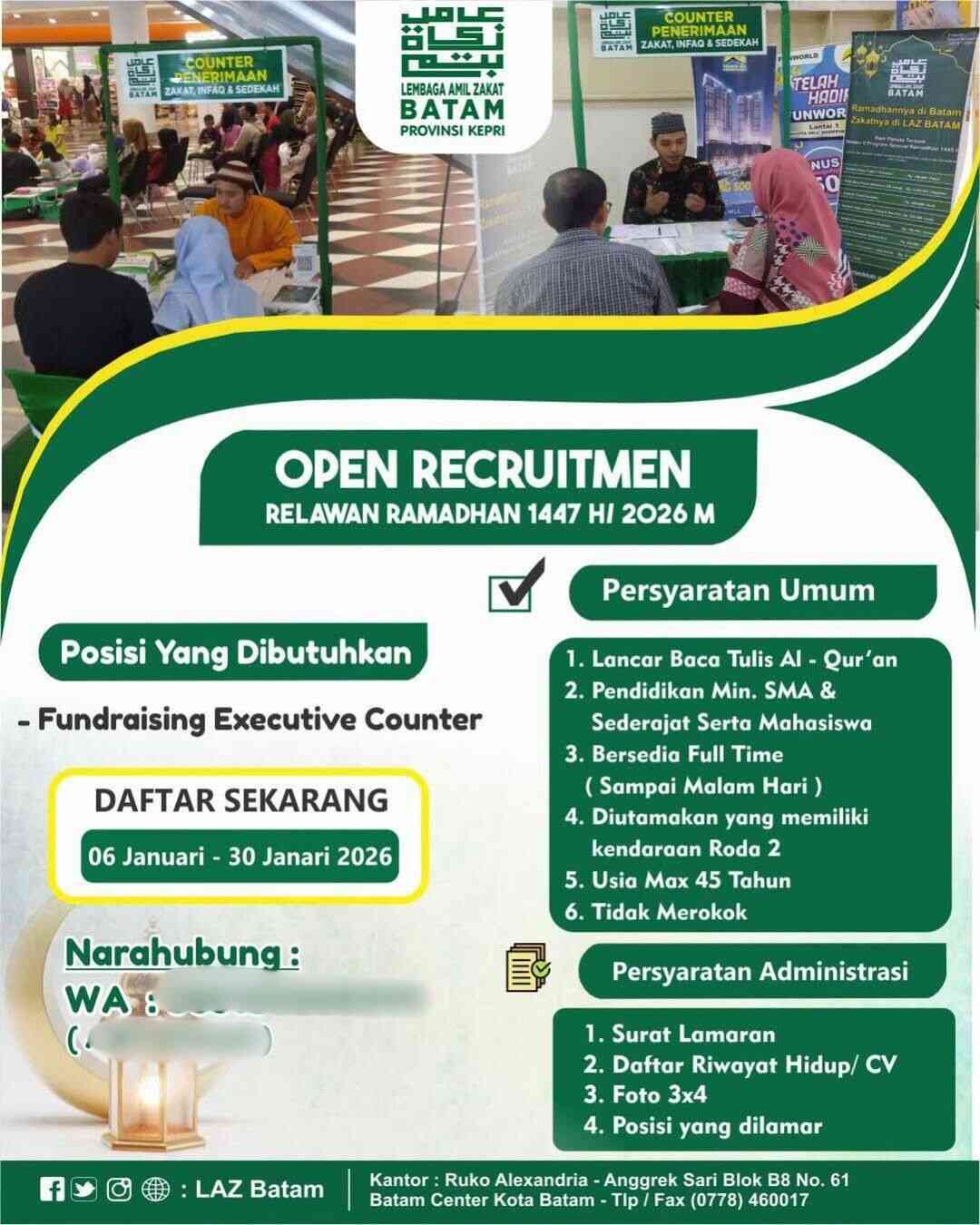 [OPEN RECRUITMENT] Relawan Ramadhan – Fundraising Executive Counter (Lembaga Amil Zakat Batam – Batam)