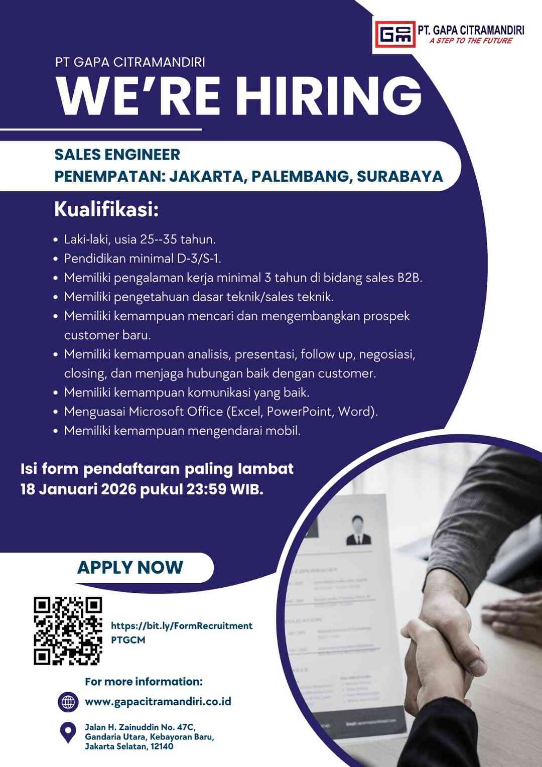[WE ARE HIRING] Sales Engineer (PT. Gapa CitraMandiri)