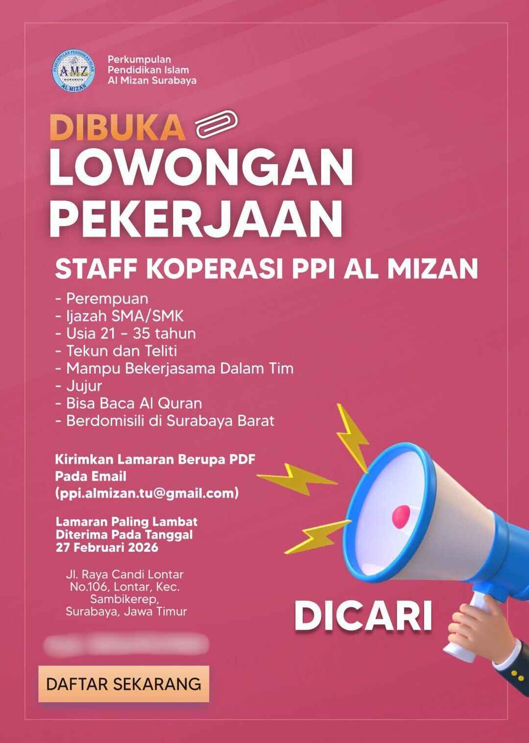 [DIBUKA] Lowongan Pekerjaan – Staff Koperasi (PPI Al Mizan – Surabaya)