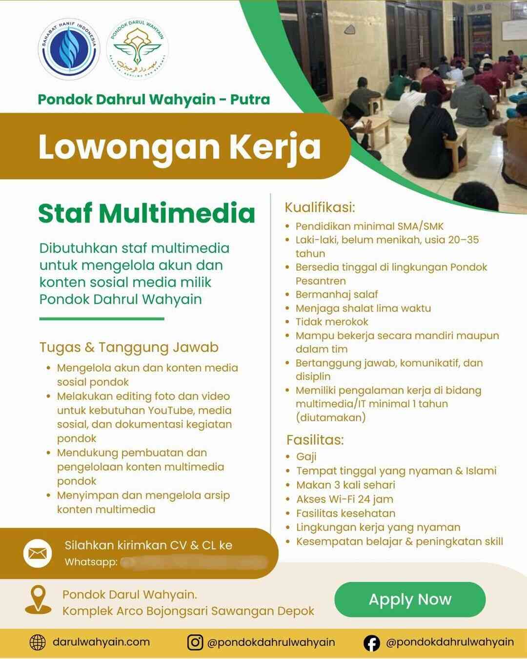 [DIBUTUHKAN] Staf Multimedia (Pondok Dahrul Wahyain Putra – Depok)
