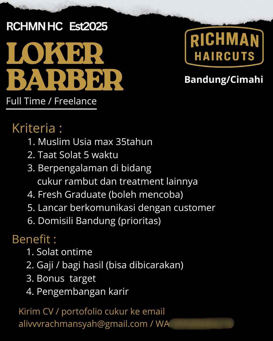 [LOKER] Barber (Full Time/Freelance) (Richman Haircuts- Bandung/Cimahi)